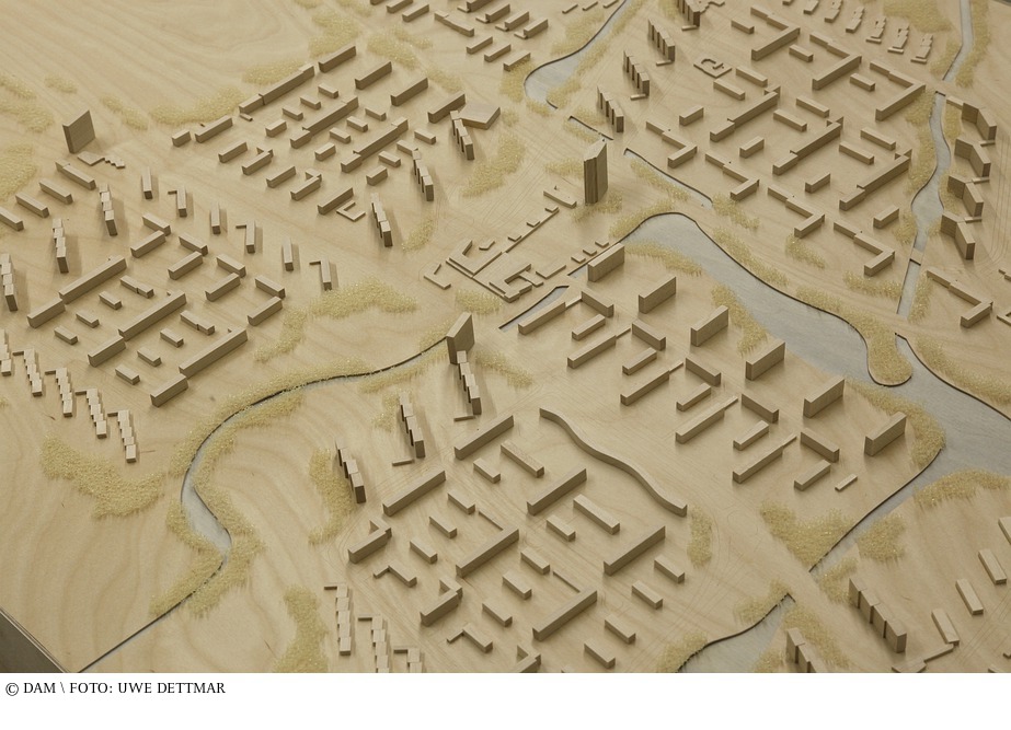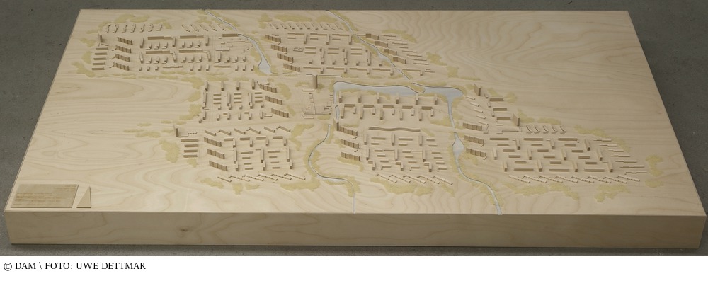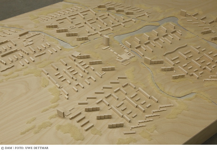 May erhielt den Auftrag zur Planung der damals größten Wohnsiedlung fast genau zu der Zeit, als er aus der Planungsabteilung der Neuen Heimat zurücktrat. Ähnlich wie bei der nahe gelegenen Gartenstadt Vahr wurde allerdings nicht ein einziges Architektenbüro mit dieser riesigen Aufgabe betraut, sondern eine Architektengruppe gebildet, der neben May und Reichow auch die Bremer Architekten Säume und Hafemann angehörten und die vom Bremer Oberbaudirektor Rosenberg ergänzt wurde. Nachdem die Architekten zunächst unabhängig voneinander Entwürfe erstellt hatten, wurde schließlich der Entwurf von Säume und Hafemann um Ideen von May und Reichow ergänzt und zur Grundlage der weiteren – gemeinsamen – Bearbeitung gemacht. Die circa 10 000 Wohneinheiten umfassende Siedlung ist in fünf Nachbarschaften in Zeilenbauweise gegliedert. An drei Seiten ist die Siedlung von einem Ring von Reihenhäusern umgeben. Das Gros der Bebauung ist drei- und viergeschossig, zur Strukturierung der Nachbarschaften waren aber auch fünf- und achtgeschossige Scheiben und an besonders herausgehobenen Stellen 14-geschossige Hochhäuser vorgesehen. Die Mitte der Stadterweiterung bilden ein Einkaufszentrum und das 22-geschossige Hochhaus von Alvar Aalto. (Florian Seidel) aus: Claudia Quiring, Wolfgang Voigt, Peter Schmal, Eckhard Herrel: Ernst May. 1886-1970, Ausstellungskatalog DAM, München 2011