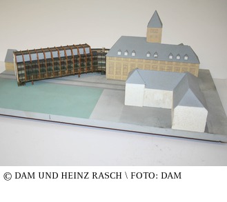 Modell des Gesamtgebäudes (Anbau) mit Umgebung, Variante