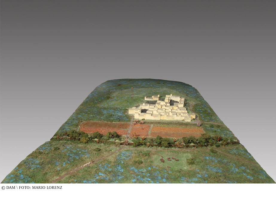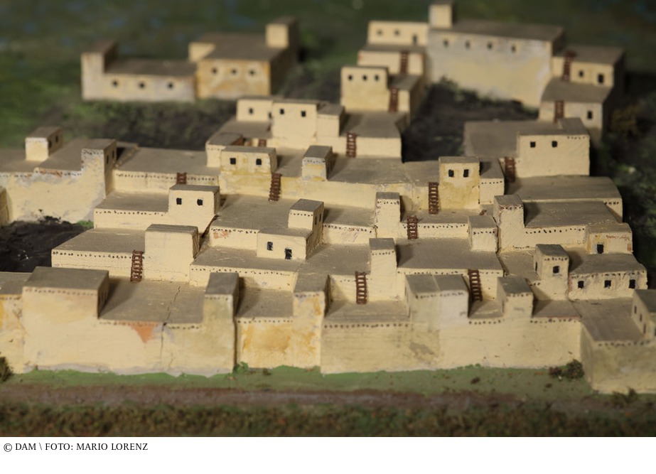 In Vorderasien, im südlichen und westlichen Mittelmeerraum entwickelten sich aus den umherziehenden Nomaden der Altsteinzeit allmählich sesshafte Gemeinschaften. Die Sammler und Jäger betrieben fortan Viehzucht und Ackerbau und die neu entstandenen Großfamilien siedelten in Dörfern, später in mit Mauern befestigten Städten. Neben Rundhäusern wurden auch rechteckige Häuser gebaut, zunächst aus Schilf und mit Lehm beworfen, dann aus Stampflehm, später aus Trockenziegeln. Das im südlichen Anatolien gelegene Çatal Hüyük zählt neben Jericho in Jordanien zu den ersten bekannten Versuchen des Menschen, städtisches Leben zu entfalten. Die Fundstätte Çatal Hüyük enthält in einer 15 Meter tiefen Ablagerungsschicht Reste von 12 aufeinanderfolgenden Besiedlungsschichten. Die Fundstätte liefert damit reichhaltiges Beweismaterial für eine bemerkenswert fortschrittliche Kultur: Hunderte von Wohn- und Kultbauten konnten ermittelt werden. Die aus Holzfachwerk und Lehmziegeln errichteten, kubischen Häuser wurden zellenartig aneinandergereiht. Plätze oder Straßen dazwischen gab es nicht. Die Hauswände verfügten weder über Türen noch Fenster, denn die Häuser wurden über eine Öffnung im Dach erschlossen, wo man über eine Leiter ins Innere gelangte. So schützte man sich vor wilden Tieren, Feinden und möglichen Überschwemmungen. Um dennoch Licht in die Innenräume zu bekommen, wurden die Häuser stufenförmig an Hängen angelegt und mit einer Reihe kleiner Fenster versehen. Die flachen Dächer wurden mit kräftigen Querbalken gebildet, auf denen kleinere Holzstämme lagerten. Geschlossen wurde die Decke mit Rohrbündeln, die mit einer dicken Schlammdecke überzogen wurden. Die Dächer waren größtenteils miteinander verbunden und boten Platz für das gemeinschaftliche, öffentliche Leben der Bewohner. Das Innere der Häuser bestand aus einem einzigen Wohnraum, der in mehrere funktionale Abschnitte unterteilt war. Erhöhte Plattformen dienten zum Sitzen, Arbeiten und Schlafen. Unter den Plattformen wurden die Toten begraben. Ein Drittel der Gesamtwohnfläche nahm die Küche mit der Feuerstelle ein, die sich unterhalb der Einstiegsleiter befand, sodass der Rauch durch die obere Einstiegsluke abziehen konnte. Die Wände waren zum Teil mit ausdrucksstarken, farbigen Wandmalereien sowie Tierreliefs, Tierschädeln oder Stierhörnern geschmückt. Man vermutet, dass in diesen Räumen auch kultische und rituelle Handlungen stattfanden. Eine Differenzierung zwischen profaner und monumentaler Architektur ist damit noch nicht nachweisbar: Der Kultbau geht im privaten Wohnhaus auf. Allein das Ornament macht die Unterscheidung zwischen profaner und kultischer Sphäre sichtbar. Der rechteckige Grundriss markiert einen Entwicklungsschritt hin zu einer rationaleren, „moderneren“ Bauweise – es kann einfacher, großformatiger und im Verbund gebaut werden. Die Ausgrabung dieser steinzeitlichen „Stadt“ in der Südtürkei brachte ein dichtes Gefüge von Rechteckhäusern zum Vorschein, die ein Siedlungsgebiet von ca. 15 Hektar bildeten. aus: Christina Budde, Peter Cachola Schmal: Von der Urhütte zum Wolkenkratzer – Eine Geschichte der Architektur in 23 Modellen, Ausstellungskatalog DAM, Frankfurt am Main 2012