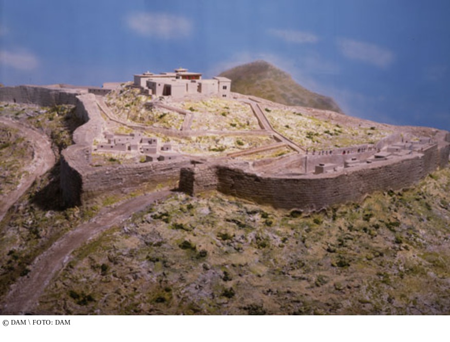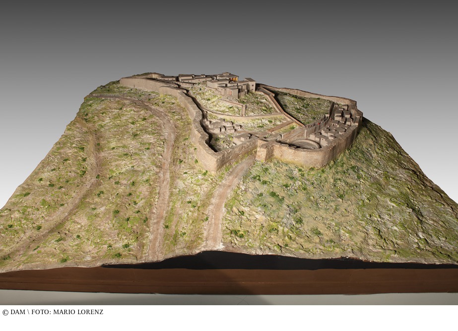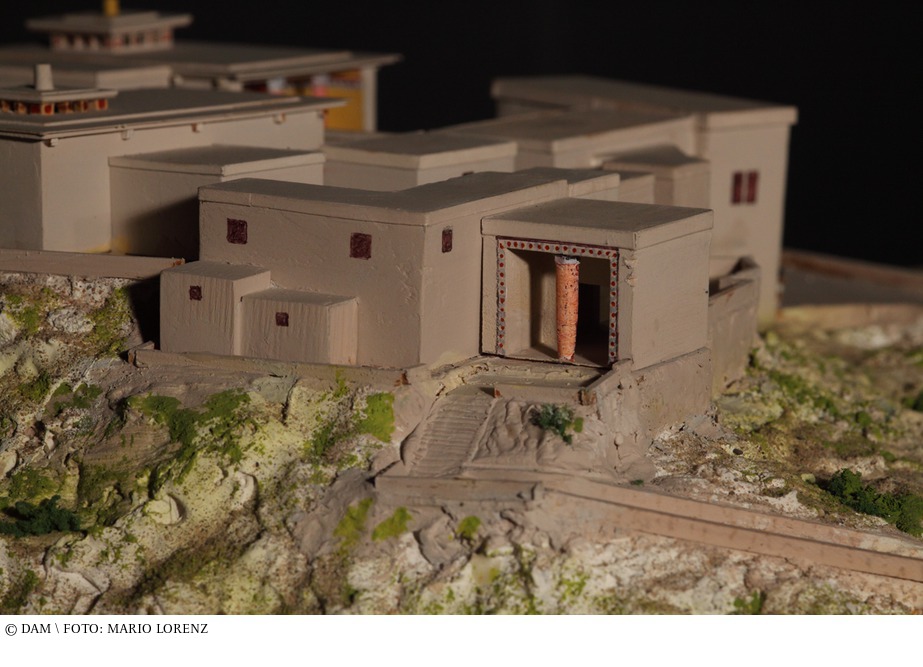 Ab 2500 v. Chr. bildeten sich im ägäischen Raum verschiedene Kulturkreise aus. Eine deutliche Zunahme von Wohlstand und Reichtum machte sich bemerkbar. Die führende griechische Stadt zwischen 1600 und 1200 v. Chr. war Mykene. Von dem auf mehreren Hügeln errichteten Mykene konnten die Archäologen neben monumentalen Zitadellen und Befestigungsanlagen, einen Palast und Grabstätten freilegen - darunter auch das Grab des Agamemnon. Während sich auf den niedrigeren Hügeln die Siedlung selbst mit ihren Wohnhäusern und Grabstätten ausbreitete, erhob sich auf der höher gelegenen Akropolis der Palast. Umschlossen war Mykene von einer etwa einen Kilometer langen Zyklopenmauer mit fünf bis sechs Tonnen schweren Steinblöcken, die zum einen als Befestigungsanlage vor den einwandernden indogermanischen Stämmen (wie Ionier oder Aioler) und zum anderen als Stützmauer für die Terrassen der Akropolis diente. Das Zyklopenmauerwerk ist charakteristisch für die mykenische Kultur, denn es fanden sich in dieser Gegend nur harte Kalksteine und Basalt, die schwer zu bearbeiten waren. Daher wurden meist auch die Wohnhäuser aus unbearbeiteten, in Lehm verlegten Steinen oder aus Lehmziegeln erbaut. Im Gegensatz zu den steinzeitlichen runden und rechteckigen Hütten hatte man einen neuen Haustyp, das sogenannte Megaron, entwickelt: Einem lang gestreckten rechteckigen Baukörper wurde an seiner Schmalseite ein offener Vorraum vorgelagert. Das Dach dieses Vorraums wurde von ein oder zwei Holzstützen getragen, wodurch der schlichte Baukörper eine betont nach außen gerichtete Eingangsfront erhielt. Der Burgberg von Mykene, von Heinrich Schliemann ausgegraben, war der Ort des homerischen Epos, der „Ilias. Im Mittelpunkt steht die kreisförmige Grabanlage, die als ein besonderer Bezirk herausgehoben wird. aus: Christina Budde, Peter Cachola Schmal: Von der Urhütte zum Wolkenkratzer – Eine Geschichte der Architektur in 23 Modellen, Ausstellungskatalog DAM, Frankfurt am Main 2012