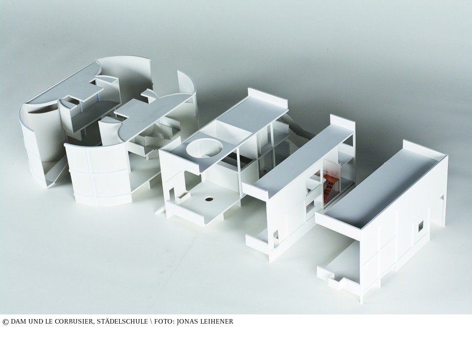 Der Pavillon de l’esprit nouveau ist einer der wichtigsten Pavillons in der Geschichte der modernen Architektur. Er diente als konzeptuelle Vorlage für Le Corbusiers Theorie über Architektur und Urbanismus und stellte gleichzeitig ein eigenständiges Organisationsmodell für den Entwurf der Immeuble-Villas dar. Der Baukörper bestand aus zwei Teilen, in einem wurden Architekturmodelle und im anderen Modelle zum Urbanismus präsentiert. Der »quadratische« Teil zeigte die modernen Wohneinheiten und der »rund geformte« Teil zeigte den städtebaulichen Entwurf »Plan Voisin«. Beide Teile waren um einen »hängenden« Garten herum angeordnet, dem Konzept für einen privaten Raum als das Zentrum des Pavillons. (Jochen Krimm) aus: Peter Cachola Schmal: Der Pavillon – Lust und Polemik in der Architektur, Ausstellungskatalog DAM, Ostfildern 2009